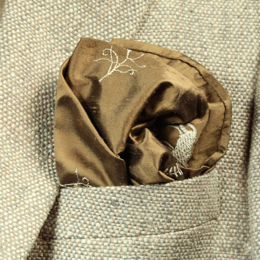 Fire Brown Hand-Embroidered Folk Art Motif Silk Pocket Square
