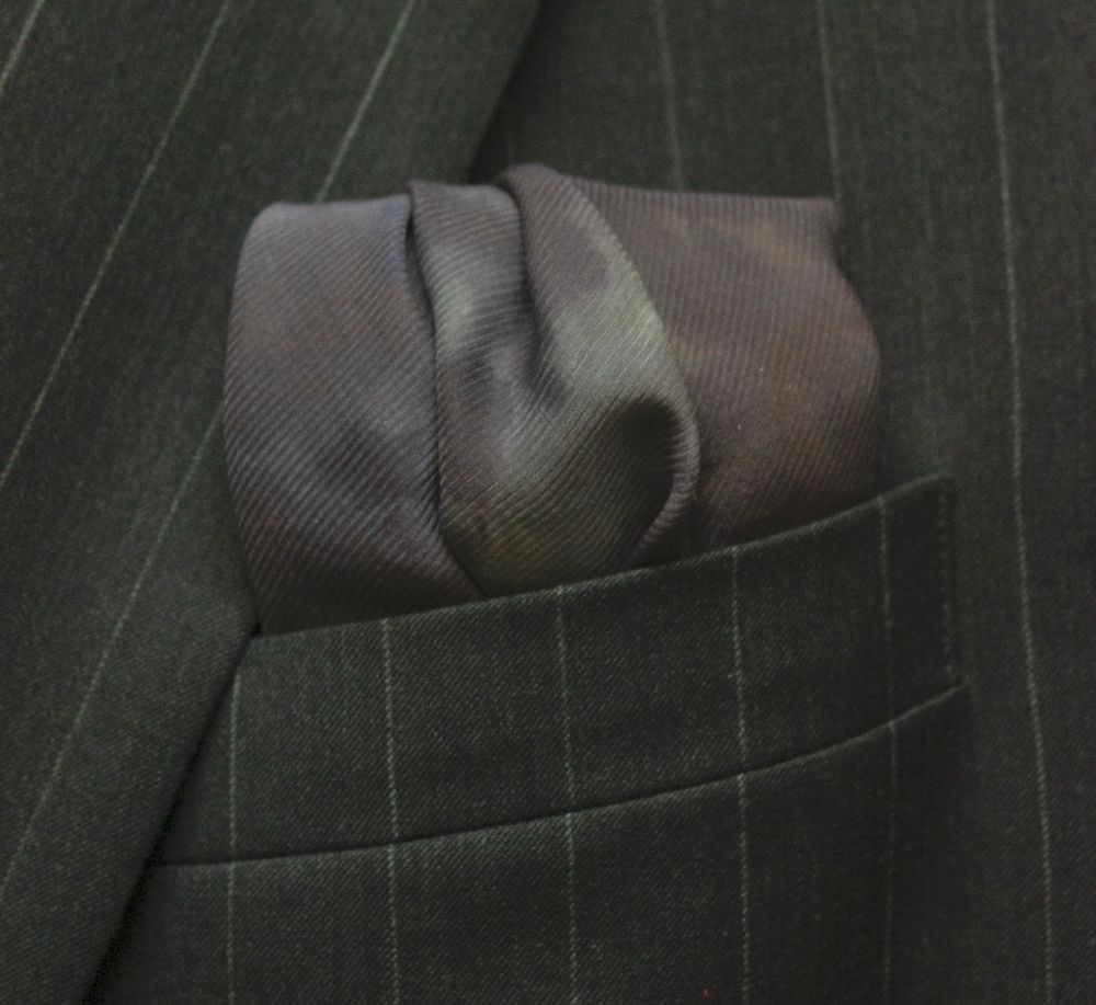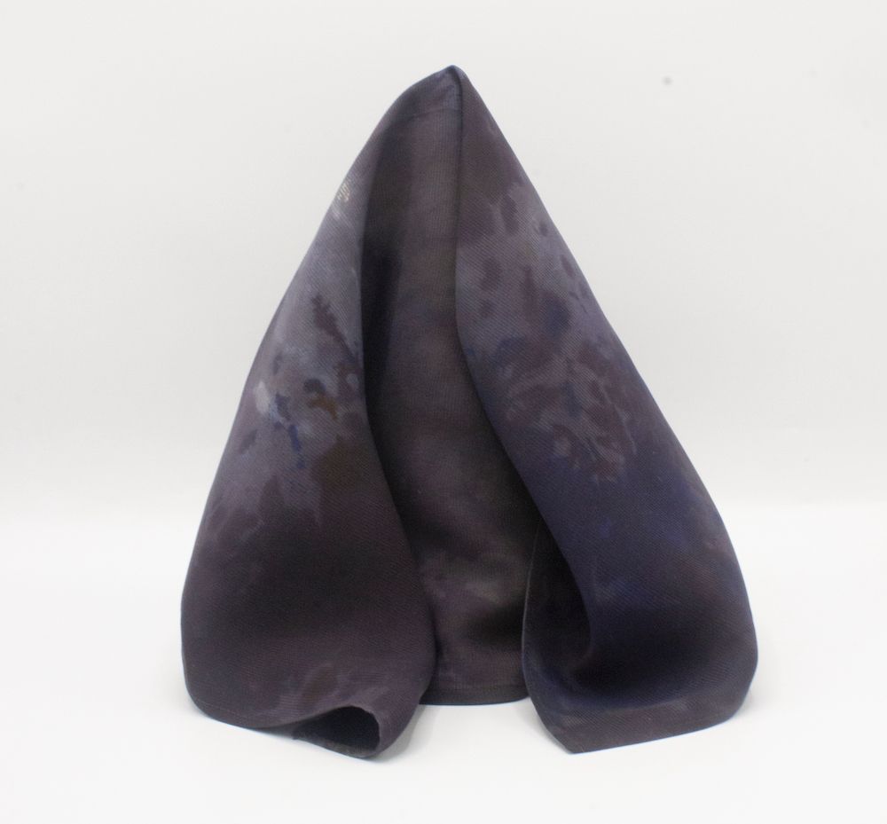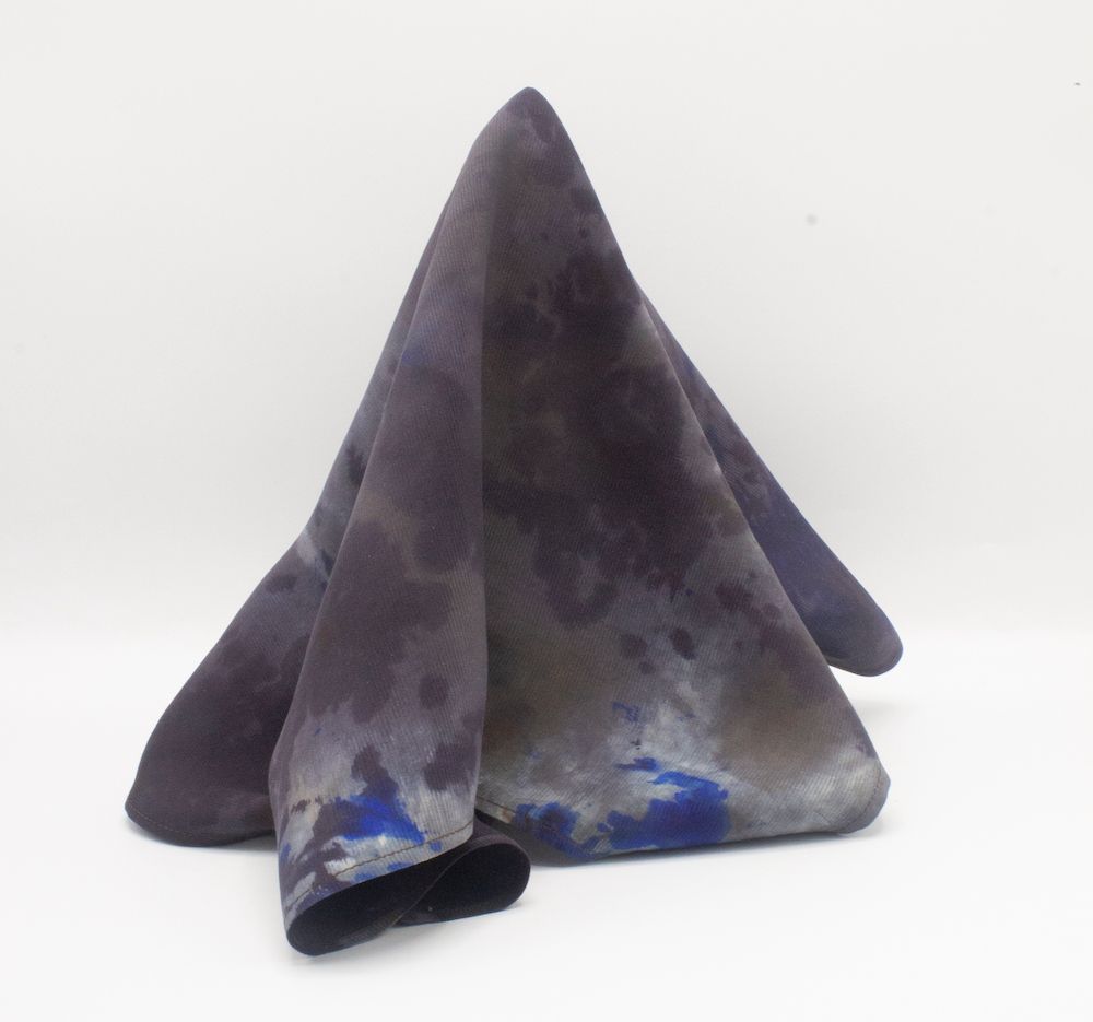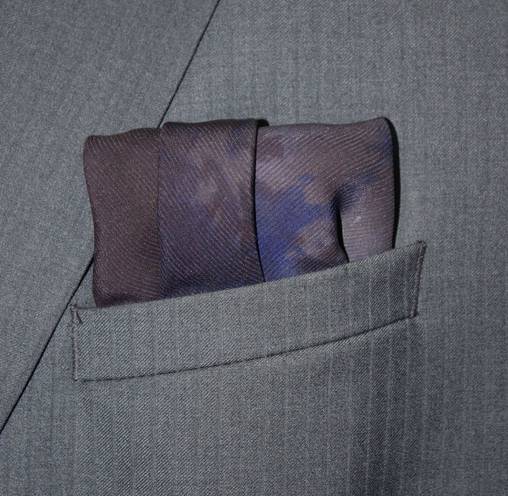 Cyclonic grey lava silk tie-dye pocket square that stands out and looks eminently unique. The colors are stormy, stone greys with a hint of indigo blue, that seem like liquefied lava that has been hardened with a rich sheen. Weighty, durable 70-gm Corded Silk that has remarkable grace, form and drape. 16” square. 100% Silk. Made in India. Rarely, if ever, does this type of silk need to be washed or ironed. Never should it be dry cleaned. Best of all, it will last forever. And worth every penny.