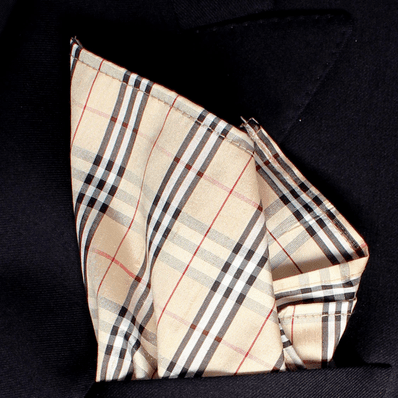 Beige Black Checks Taffeta Silk Pocket Square