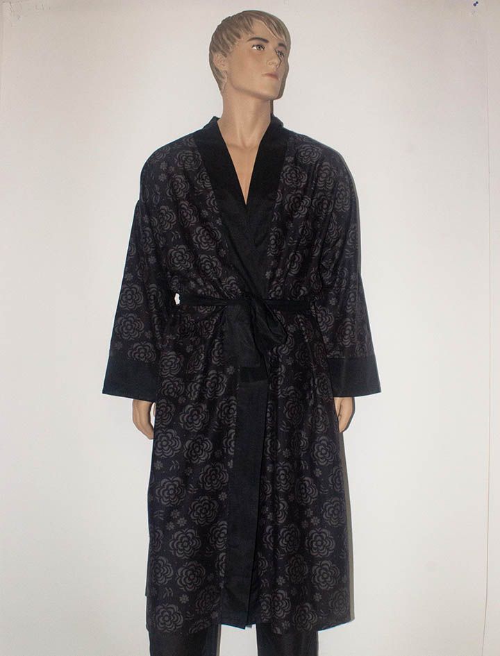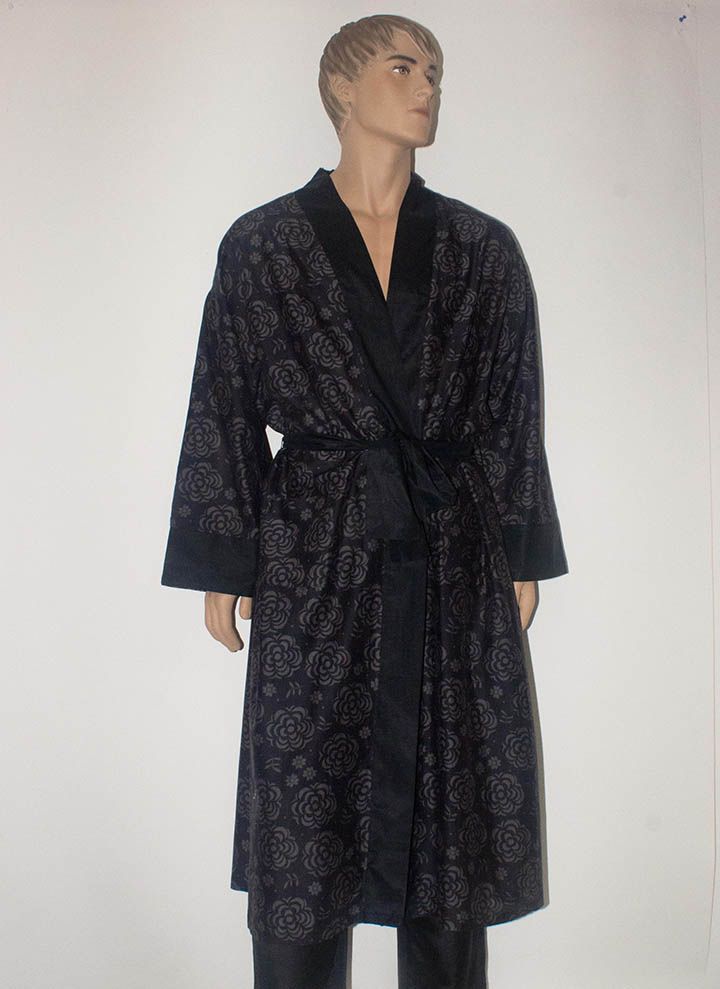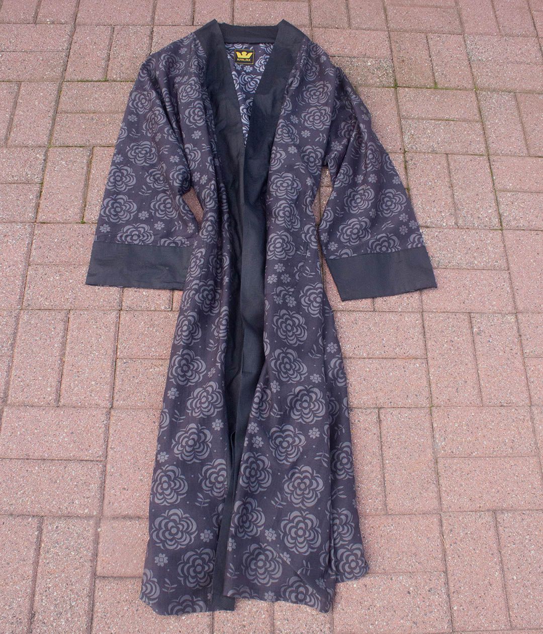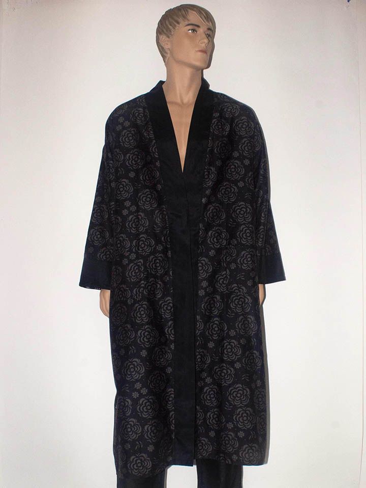 Posh, powerful, propulsive, high-intensity black charcoal lotus print silk cotton kimono. Lavish, long length, about 54 inches, with 20-inch sleeves. There’s nothing like a majestic black kimono to empower your soul and give you that special feeling of strength, fortitude, and confidence. That’s the magnificent power of the color black as rendered in this captivating lotus print. Bathe yourself in this blend of silk and cotton and find out how soft, soothing and comfortable this fabric is. With two large front pockets and a sizable sash belt. One size fits all. High-quality blend of Silk, 20%, and Cotton, 80%, by Royal Silk®. Imported. No need to dry clean. This silk cotton kimono is easy to hand wash, instructions included. Or machine was with the use of our Made-in-USA Laundry Bag for silks and fine washables, that comes in two sizes, and sold separately.