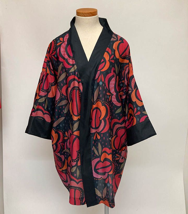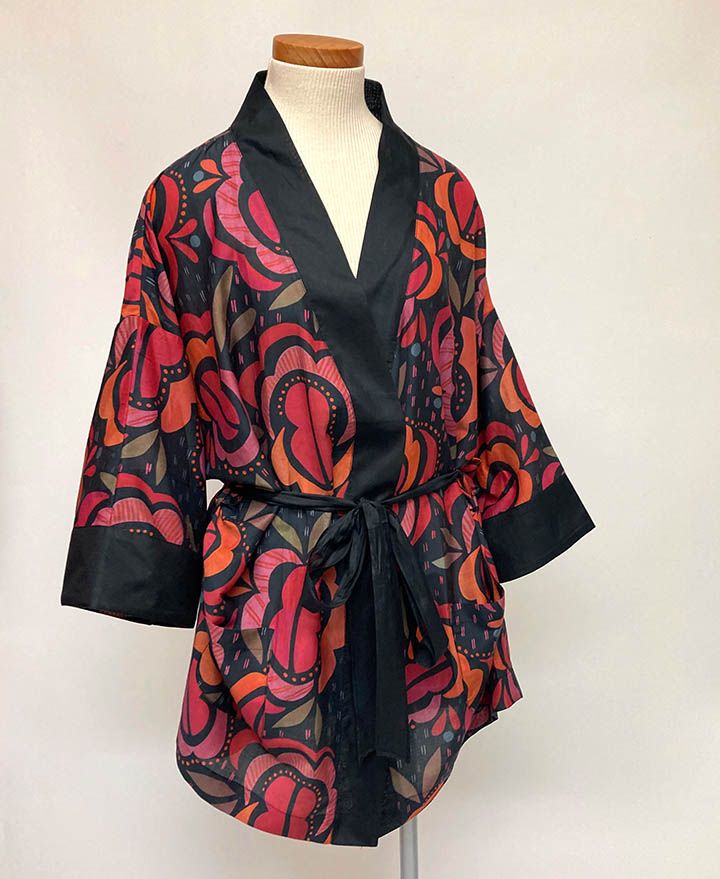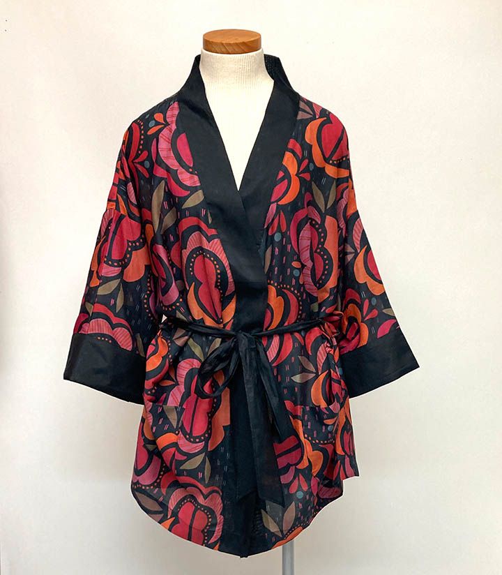 Short Black Red Orchid Kimono, $65