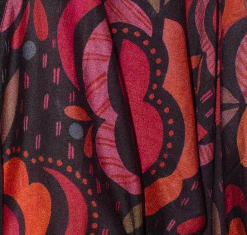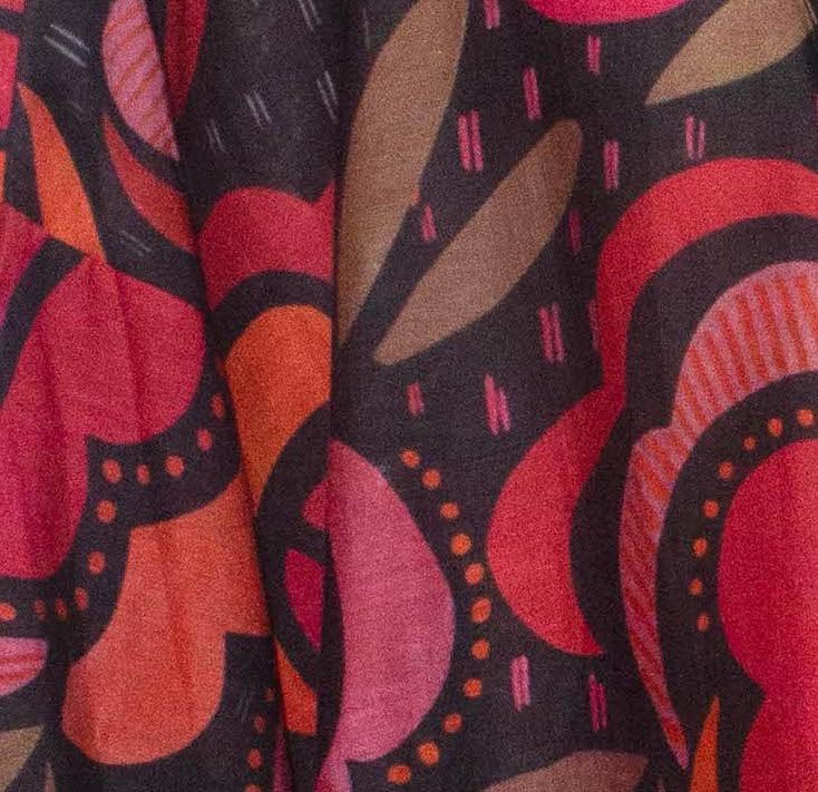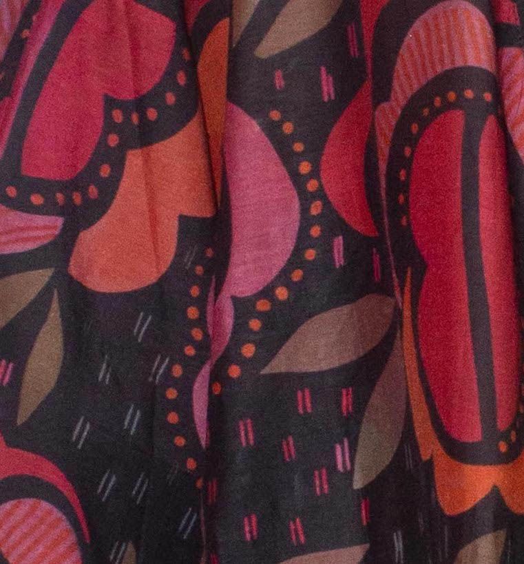 Sharp, sophisticated and elegant black red orchid print silk cotton kimono. Falls above knee length, about 33 inches long. There’s nothing like an attractive, bold print kimono to look charming, eloquent, and meaningful. Plus there’s a certain feeling of contentment, relaxation and satisfaction that comes with its use. Bathe yourself in this blend of silk and cotton and find out how soft, soothing and comfortable this fabric is. With two large front pockets and a sizable sash belt. One size fits all. High-quality blend of Silk, 20%, and Cotton, 80%, by Royal Silk®. Imported. No need to dry clean. This silk cotton kimono is easy to hand wash, instructions included. Or machine was with the use of our Made-in-USA Laundry Bag for silks and fine washables, that comes in two sizes, and sold separately.